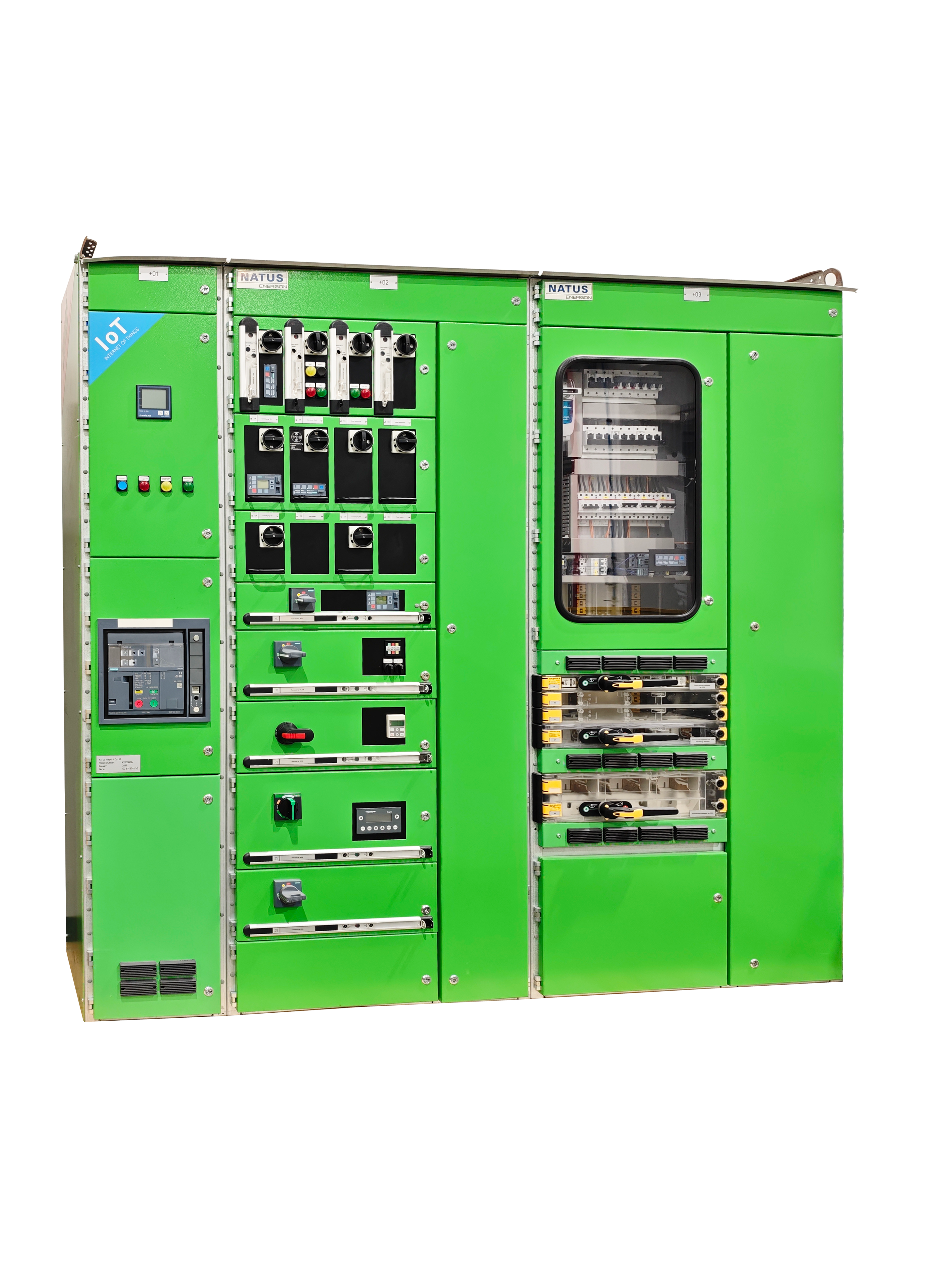 帶有安全門裝置的抗電弧型全封閉垂直母線系統(tǒng) (ARCSAFE),采用了獨有的U槽狀π型銅母線和安全門及散熱型絕緣后蓋板,具有載流量高(最高可達2000A),當抽屜單元被抽出時,垂直母線隨即完全被安全門屏蔽絕緣